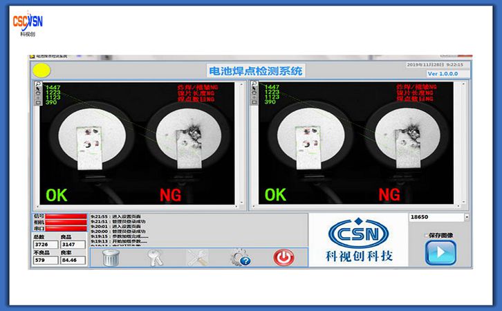 焊點質量檢測系統是檢測18650圓柱電池與電極焊接處的焊點質量的系統,該系統可以檢測焊點的大小,有無,炸焊,鎳片有無,鎳片長度等。